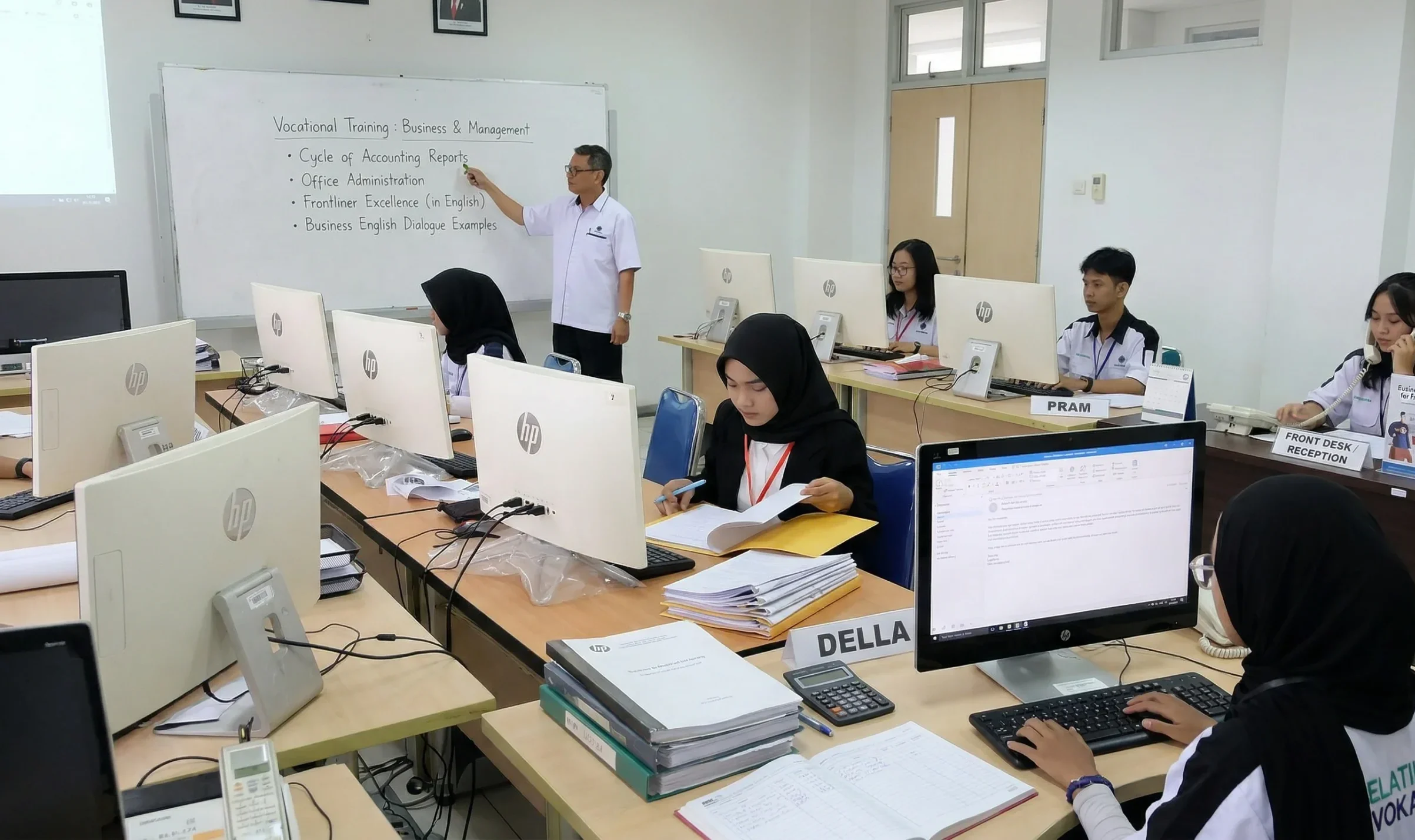 Kejuruan Bisnis dan Manajemen mencetak sumber daya manusia untuk kebutuhan administrasi perkantoran, keuangan, dan garda depan perusahaan. Peserta dilatih untuk mengelola operasional kantor, menjalankan siklus pelaporan akuntansi, dan memberikan layanan prima termasuk melalui komunikasi bahasa Inggris tingkat operasional.