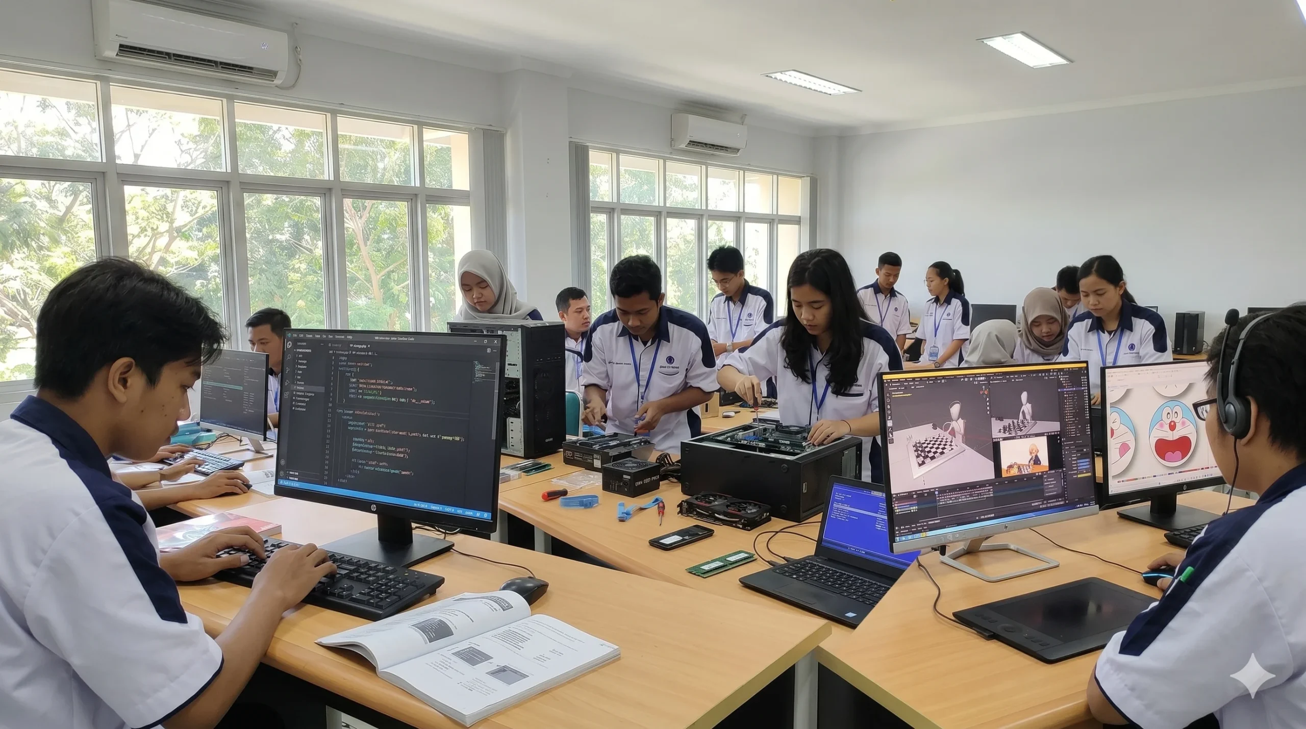 Kejuruan Teknik Informasi dan Komunikasi dirancang untuk mencetak tenaga profesional di bidang teknologi digital, desain visual, dan pengembangan antarmuka. Materi pelatihan sangat beragam, meliputi animasi 3D, desain grafis, perakitan dan pemeliharaan perangkat keras komputer, hingga pemrograman web dinamis.