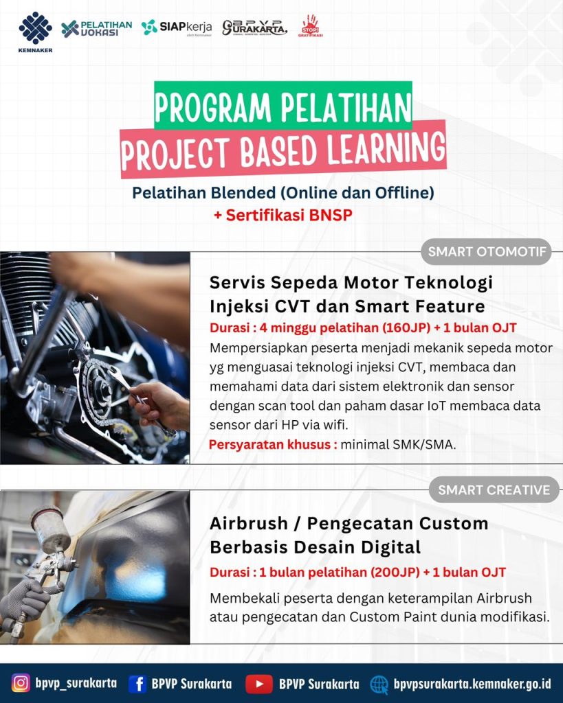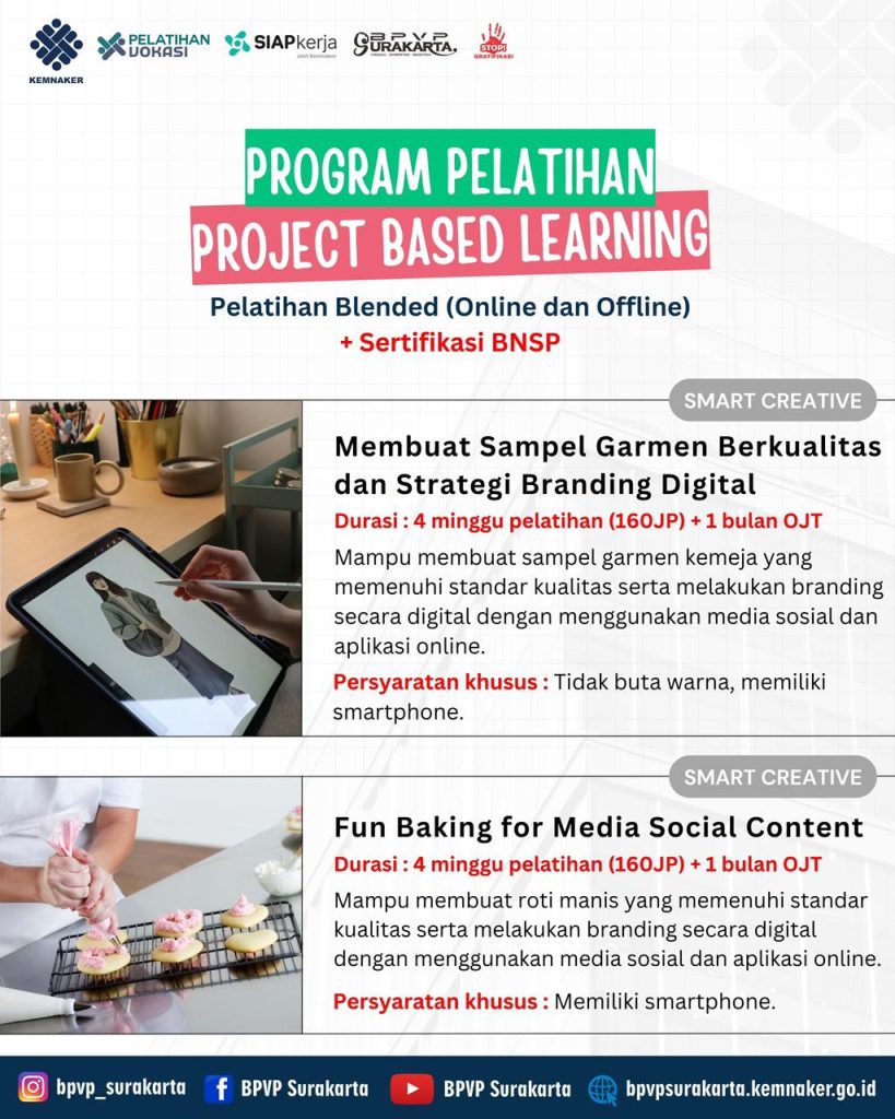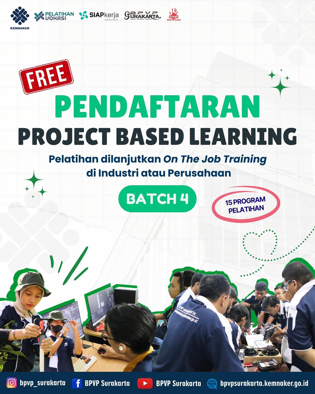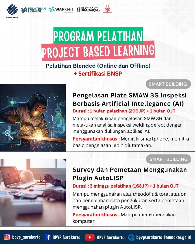 ✨ BPVP Surakarta kembali membuka 15 program pelatihan Project Based Learning (PBL) untuk kamu yang siap serius upgrade skill dan tingkatkan daya saing di dunia kerja.