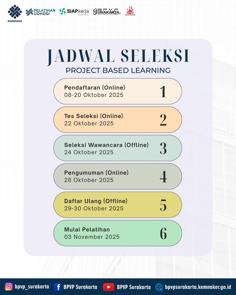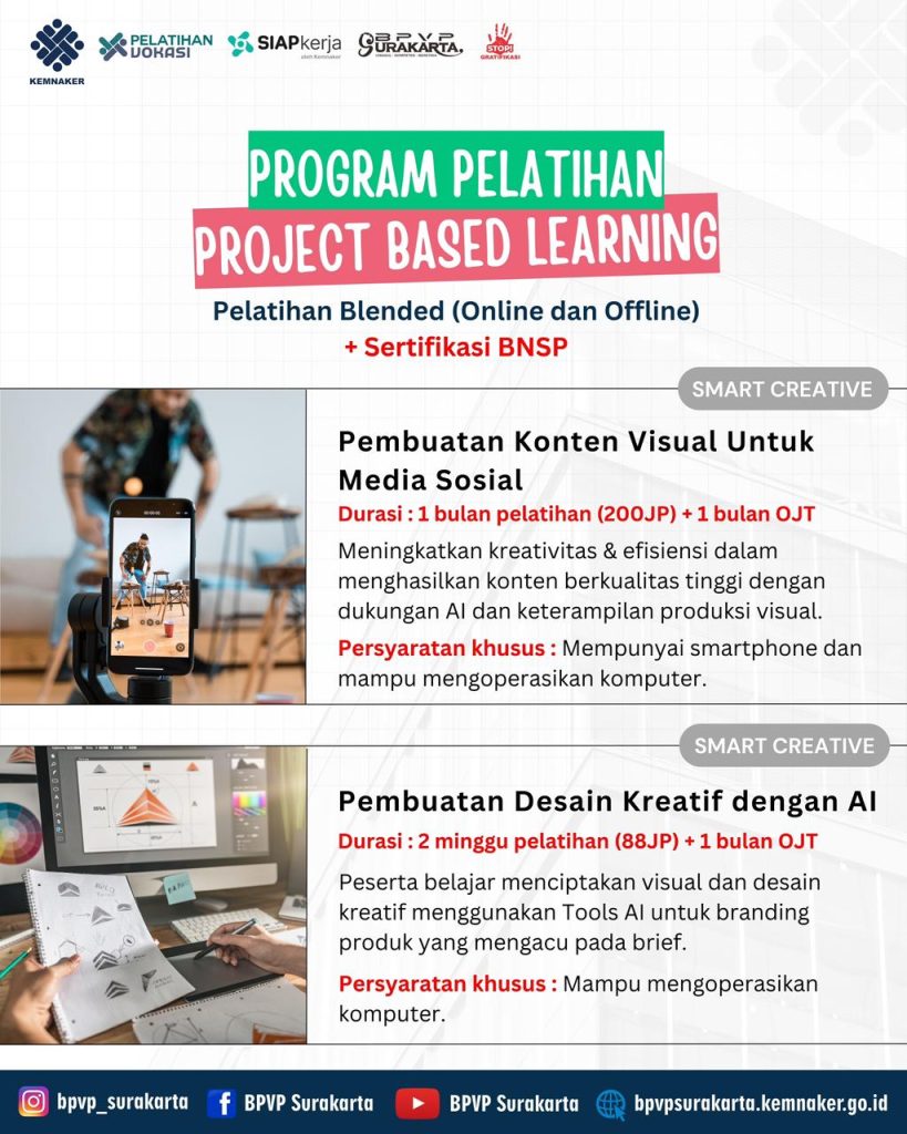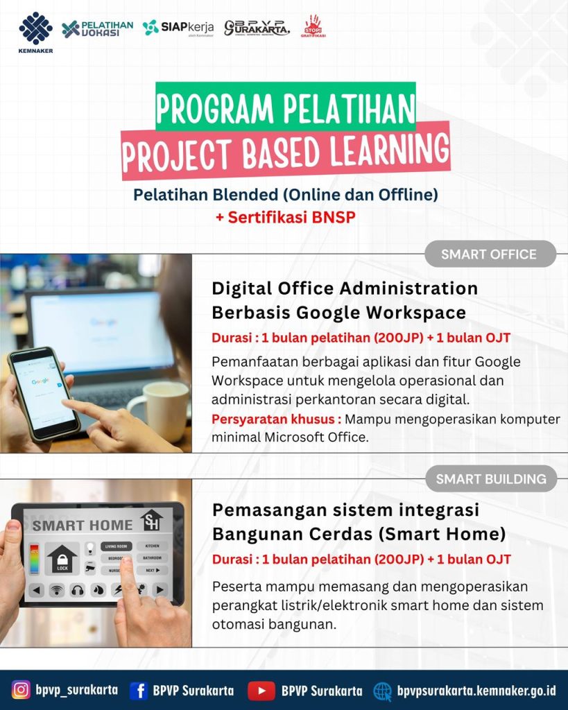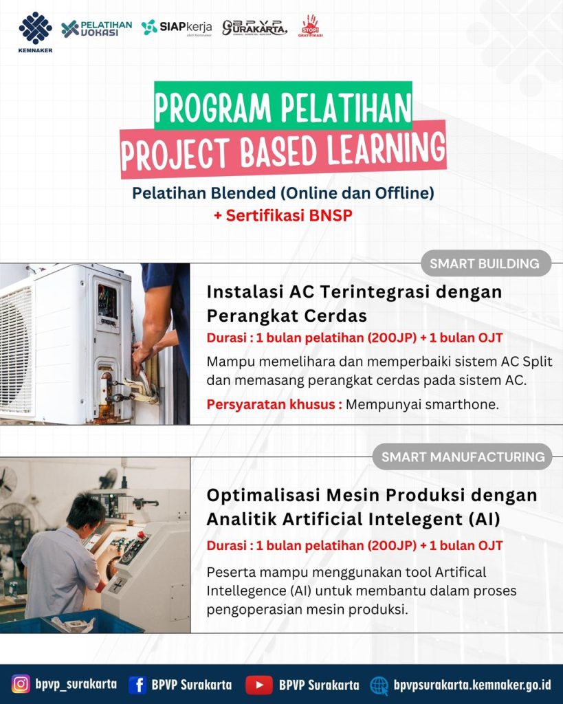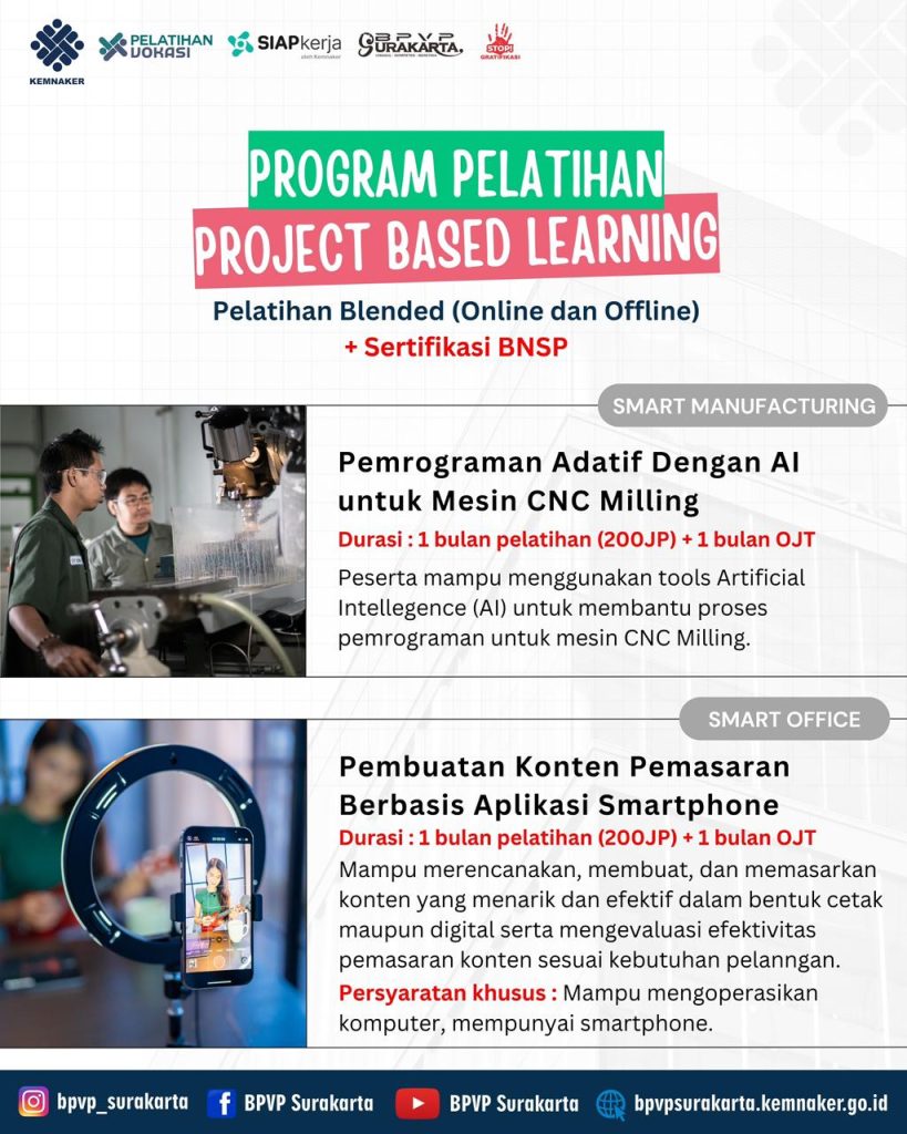 ✨ BPVP Surakarta kembali membuka 15 program pelatihan Project Based Learning (PBL) untuk kamu yang siap serius upgrade skill dan tingkatkan daya saing di dunia kerja.