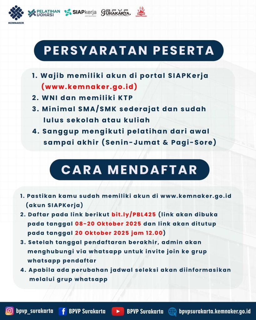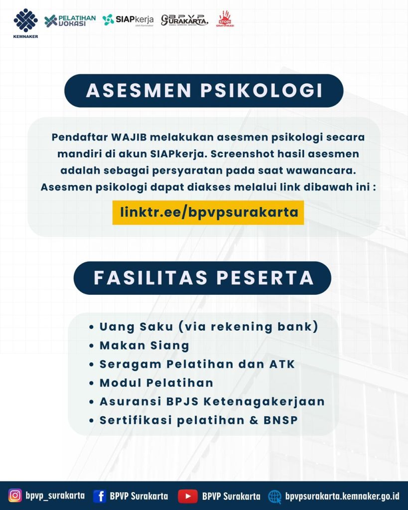 💪 Yuk daftar sekarang dan wujudkan karier impianmu bersama BPVP Surakarta!
